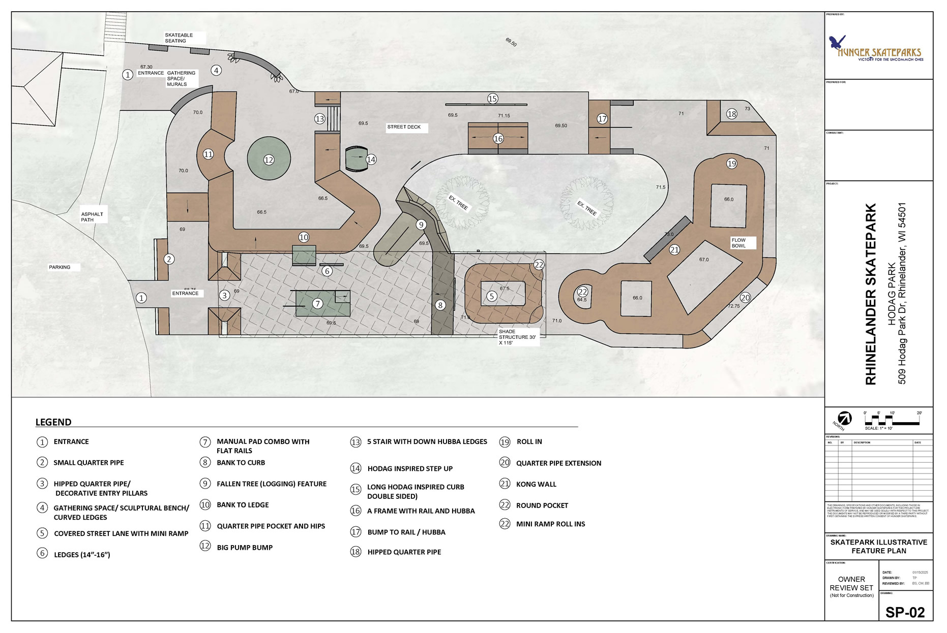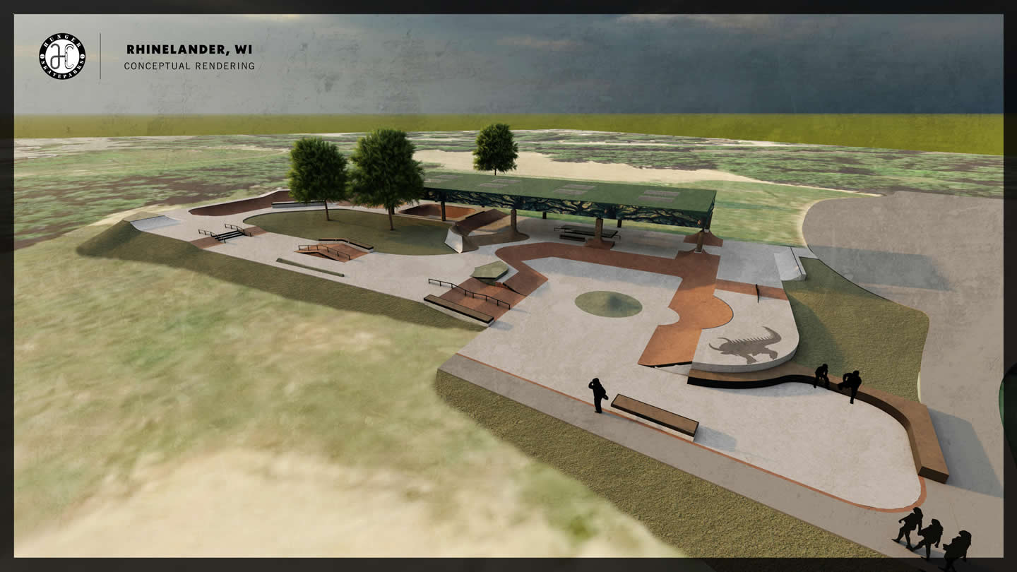 The park will be designed to maximize flow, so that one feature flows into the next and the whole thing becomes a natural extension of Hodag Park as you enter and move through. It will take an underutilized area of the park and make it a focal point. It will be an inclusive environment that encourages creativity and skill development. This skatepark won’t just be a place to skate; it will be a community hub. It will be a way for the people of Rhinelander and surrounding communities to come together, stay active, and enjoy the outdoors. In addition it will serve as a medium for multiple generations of skaters and other members of the community to connect. It will be a welcoming and vibrant space at the top of Hodag Park and a focal point for youth, built in a beautiful and engaging setting that welcomes in the rest of the community.